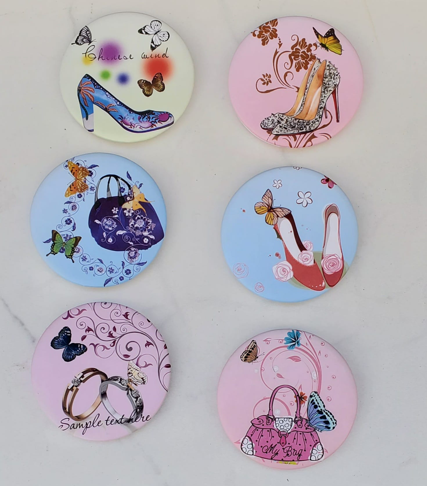 Rings, Blue red heels, Beige heels, Pink heels, Pink bag, Blue bag