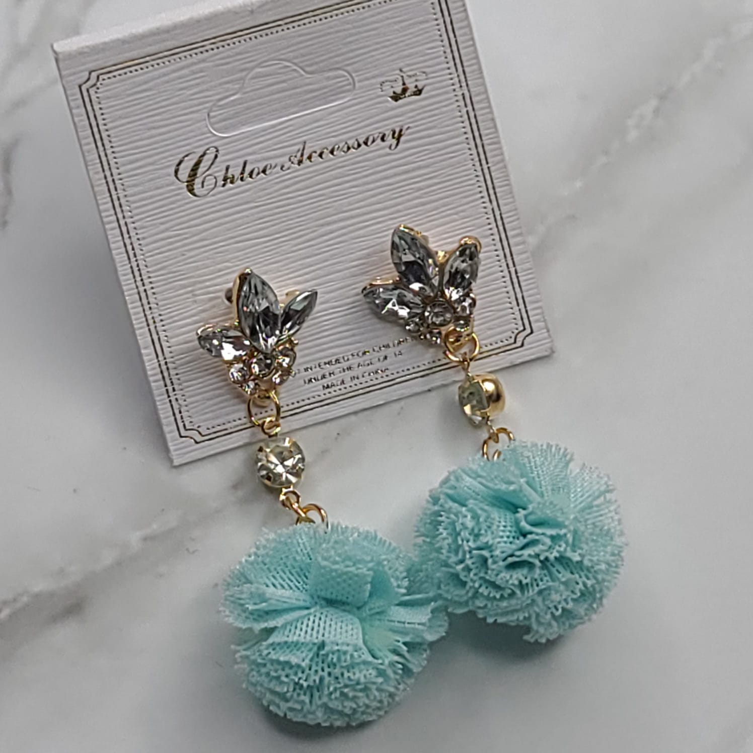 Earring with pompom Aqua