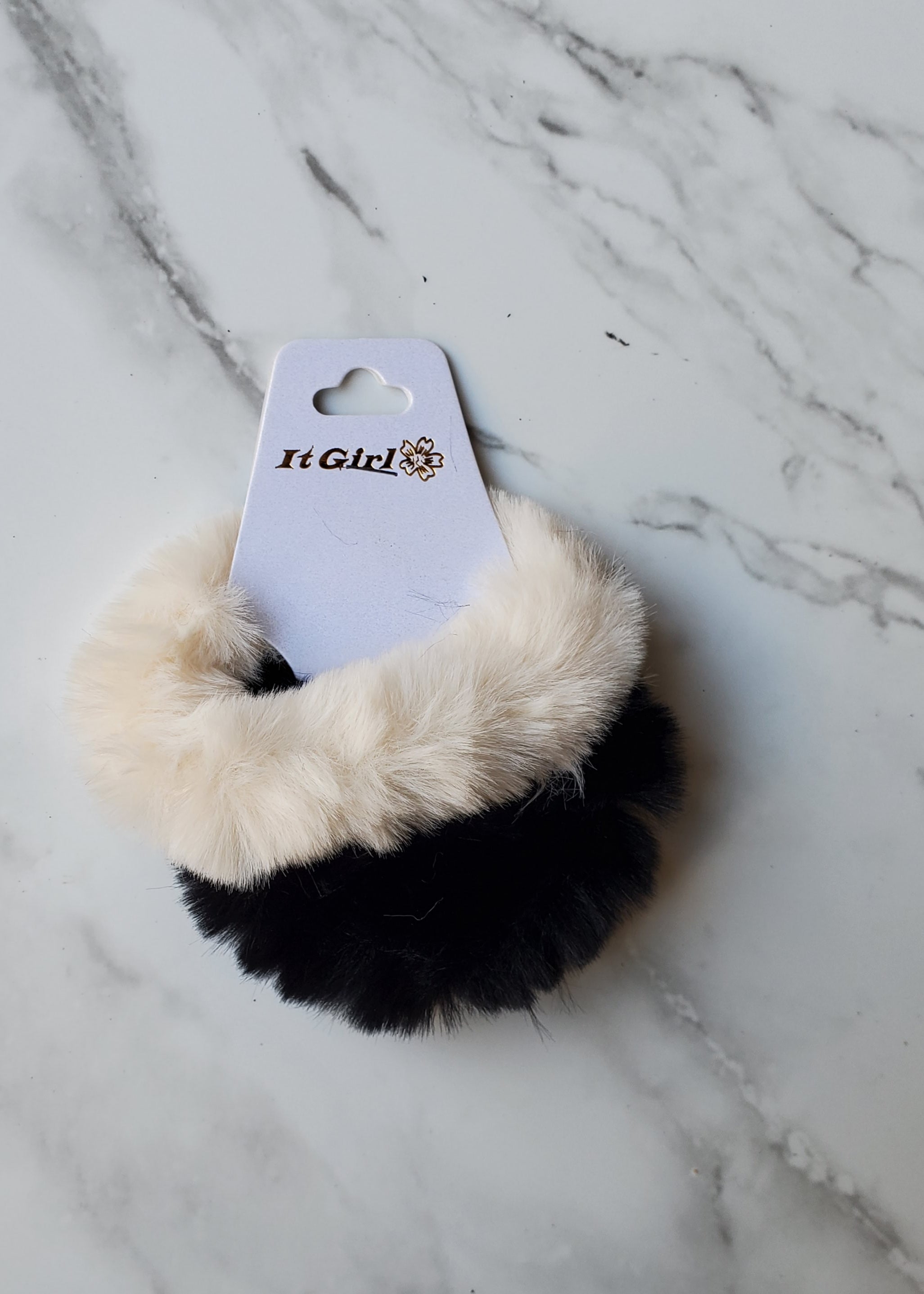 Fuzzy Scrunchie Black/white