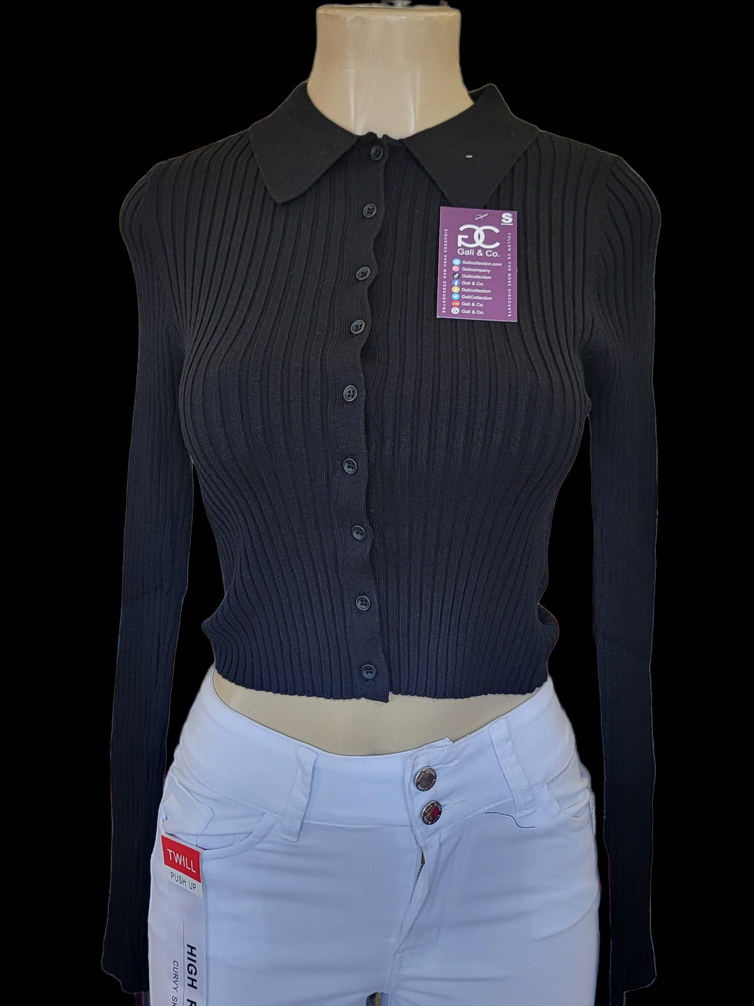 Button down top solid BLACK