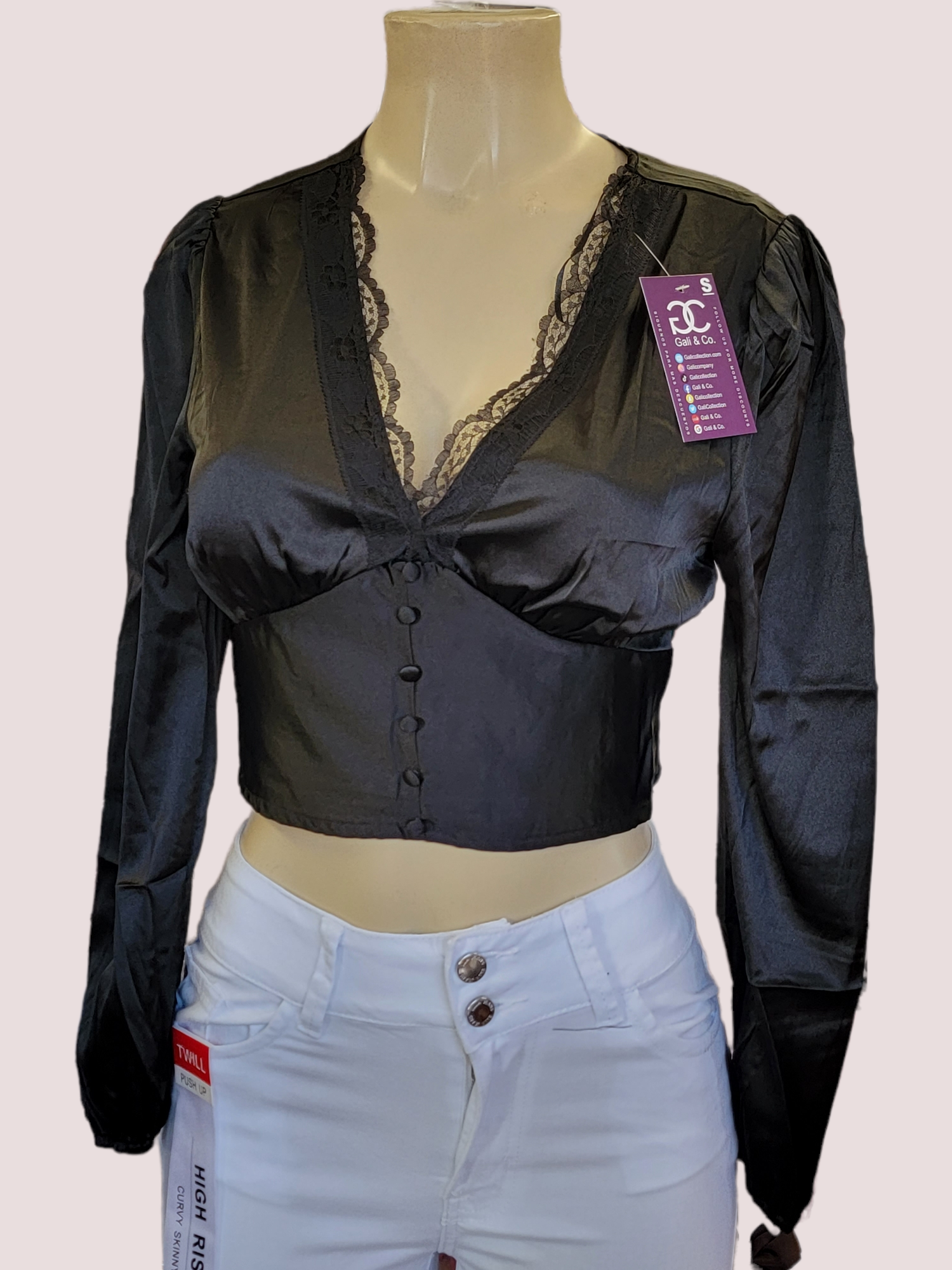 Satin crop top BLACK