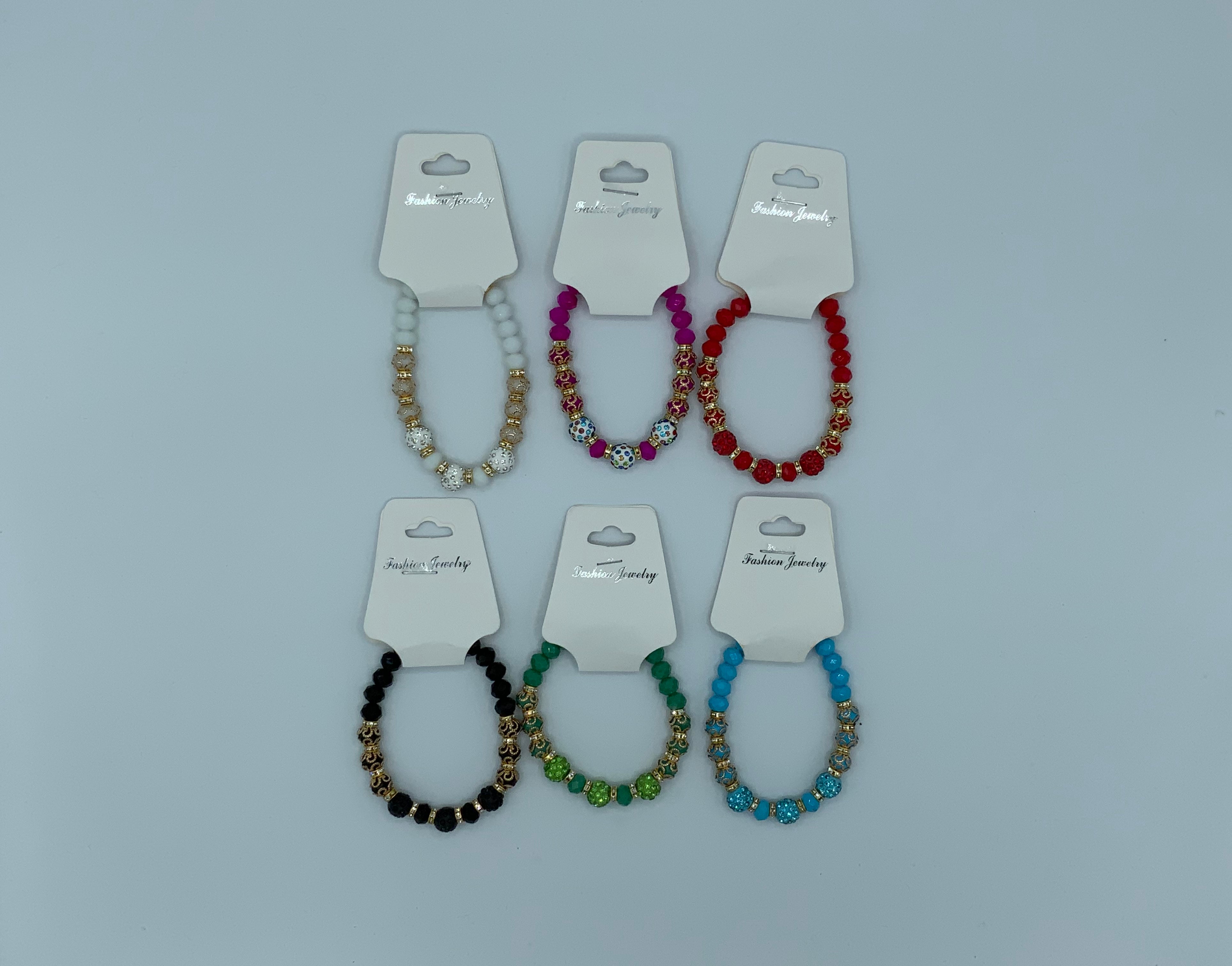 White, Hot pink, Red, Green, Black, Blue