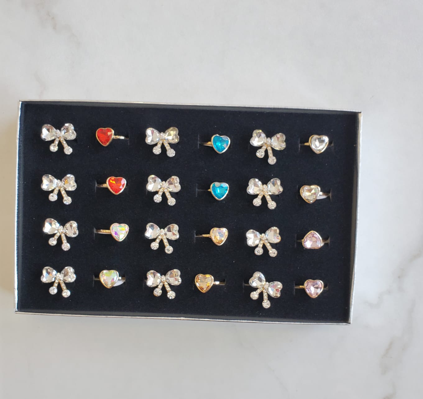 White heart, Pink heart, Blue heart, Yellow heart, Holografic, Red heart, Bow