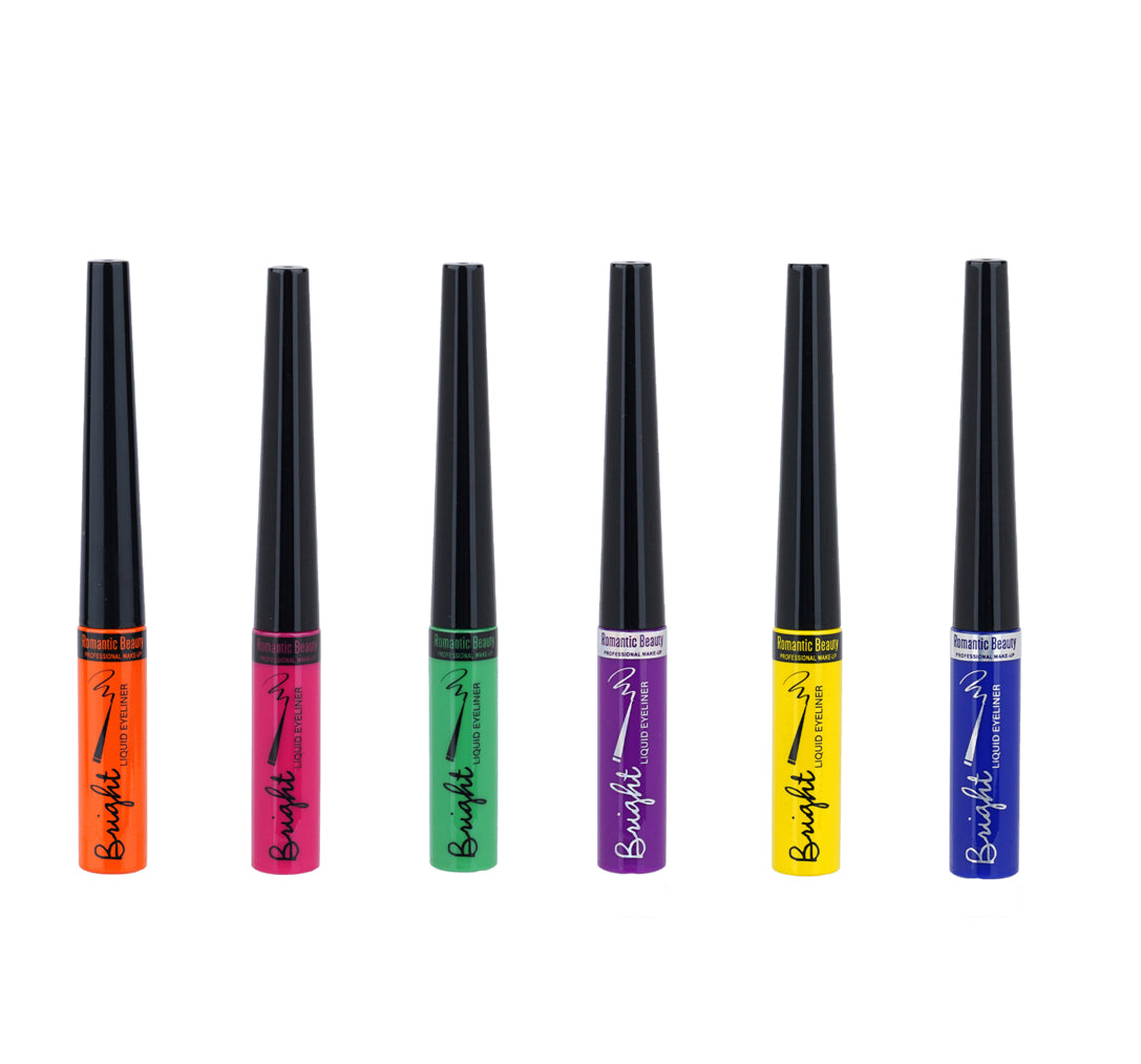 Vibrant opaque liquid color with just one swipe! Romantic Beauty's long-lasting Bright color liquid eyeliners count with an ultra-thin brush for flawless and precise application. Available in six vivid shades, the Bright color liquid eyeliners' quick-drying formula never flakes or cracks! Apply it over eyeshadow for an extra pop of color, or wear it on its own to make it the star of the show!