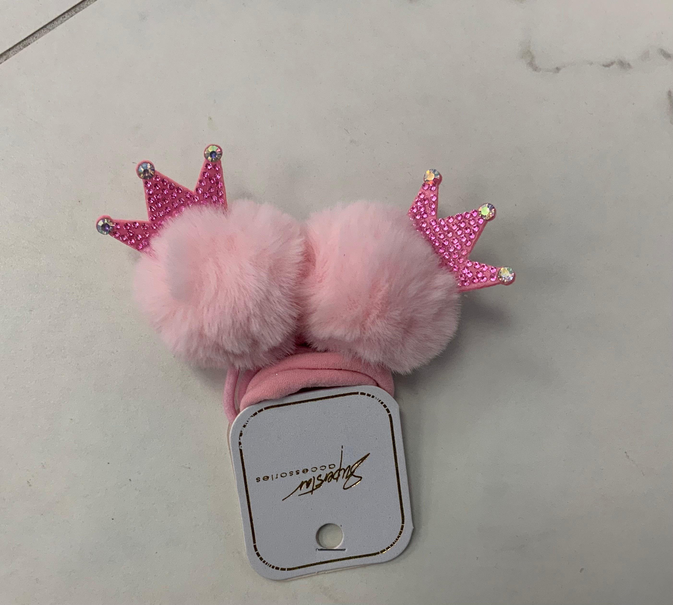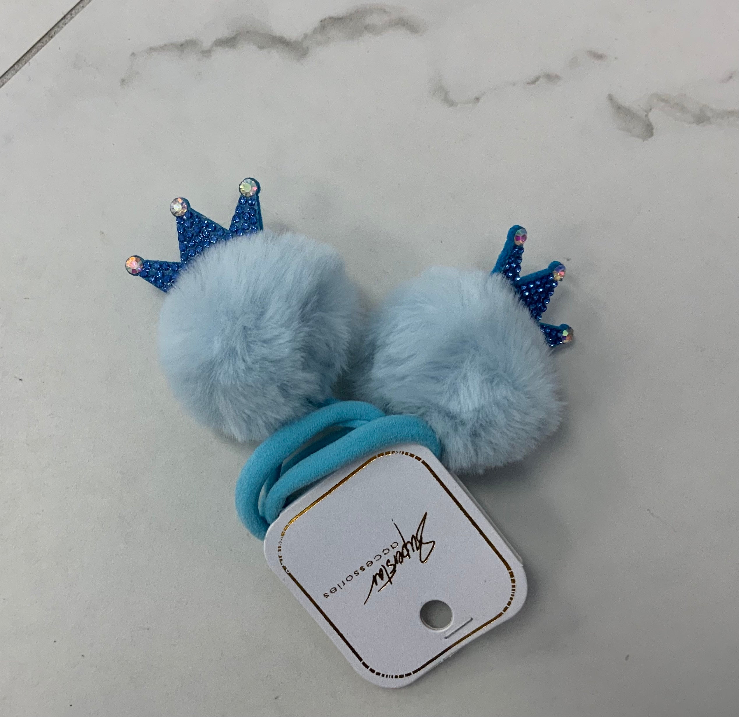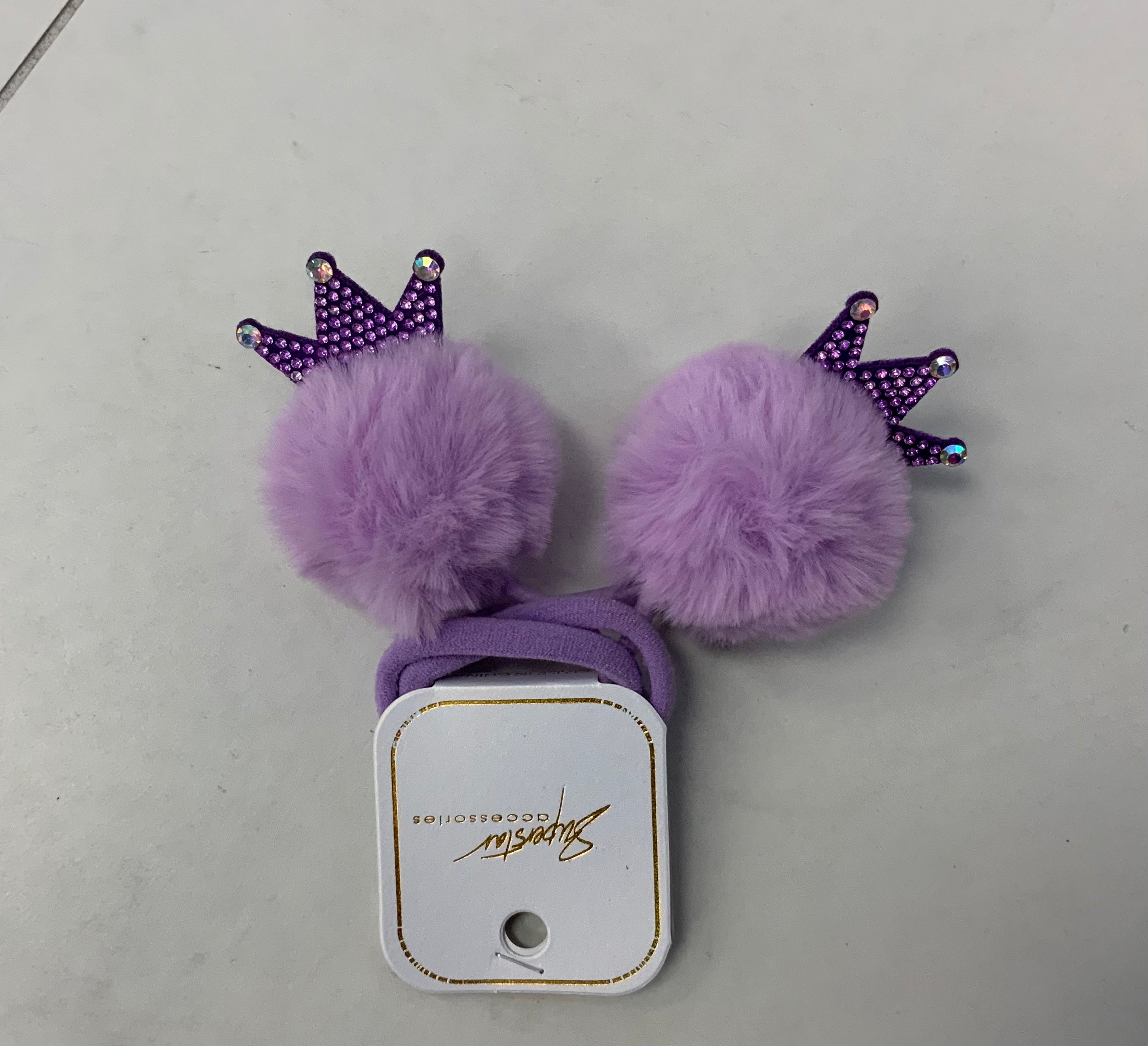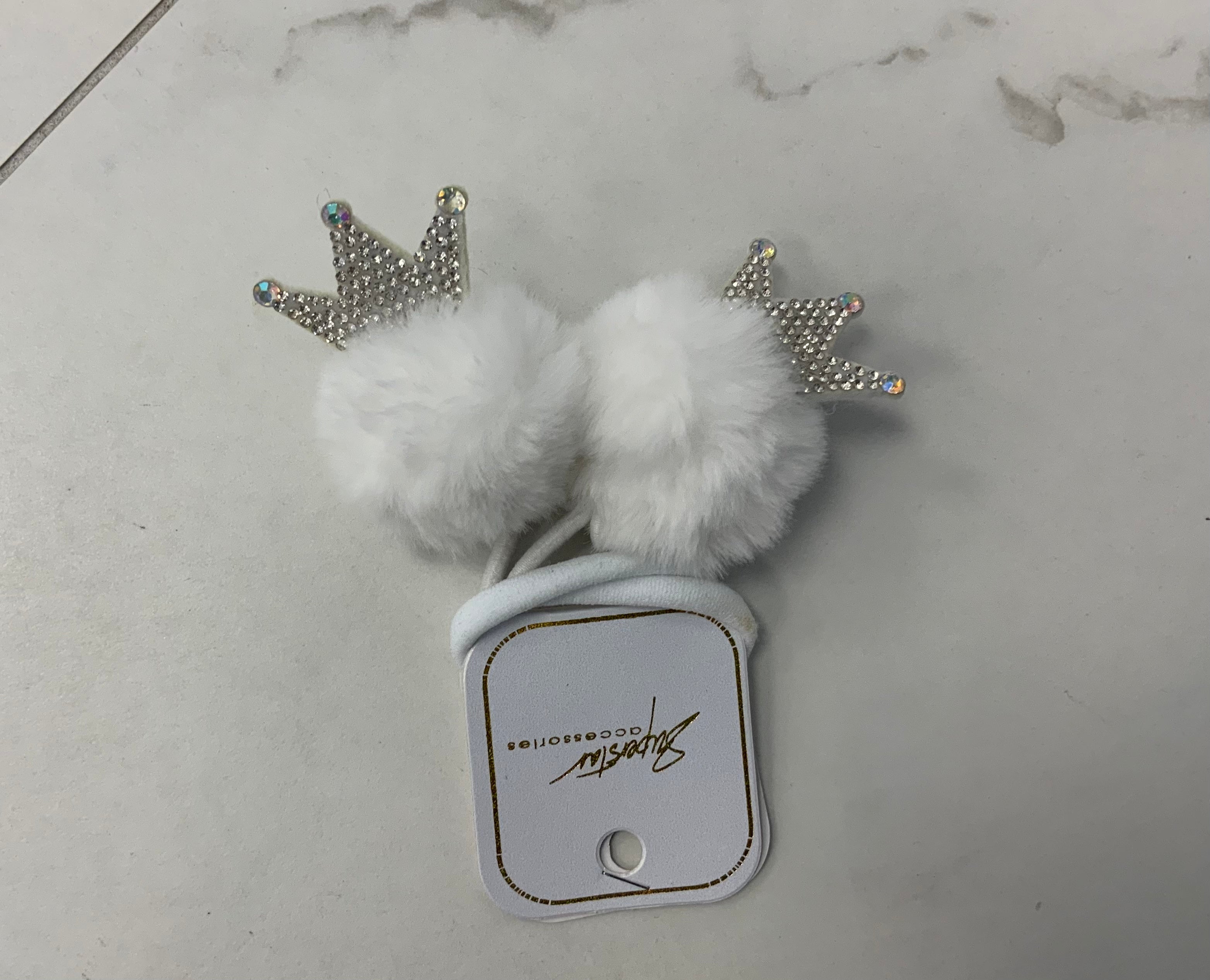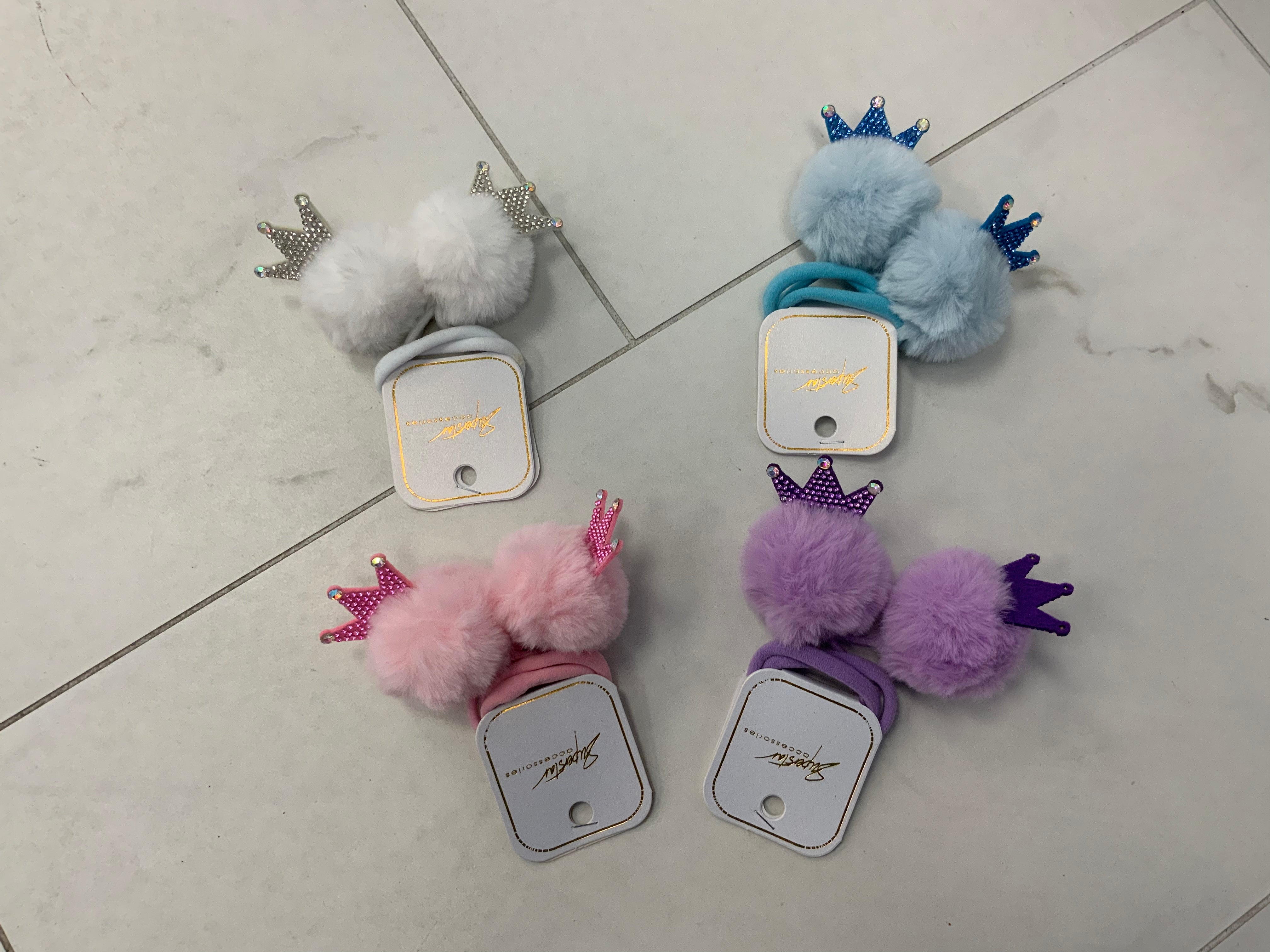 Pom pom hair tie with crown
