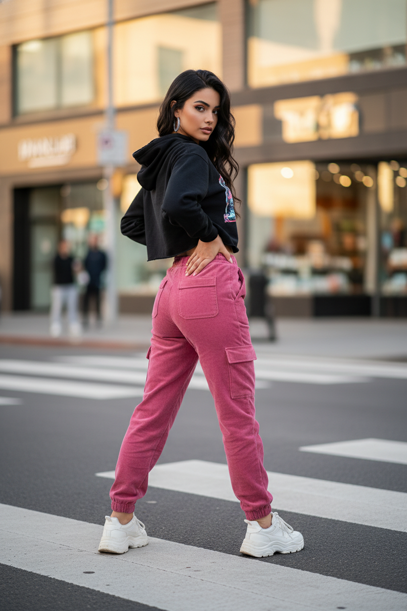 Pink cargo joggers