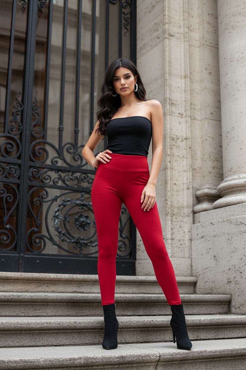 Red warm LEGGINGS  High-waisted skinny jean leggings with a soft warm lining for all-day comfort. stretchy fabric that hugs your curves and ankles perfectly. Stylish, cozy, and flattering—perfect for everyday wear.