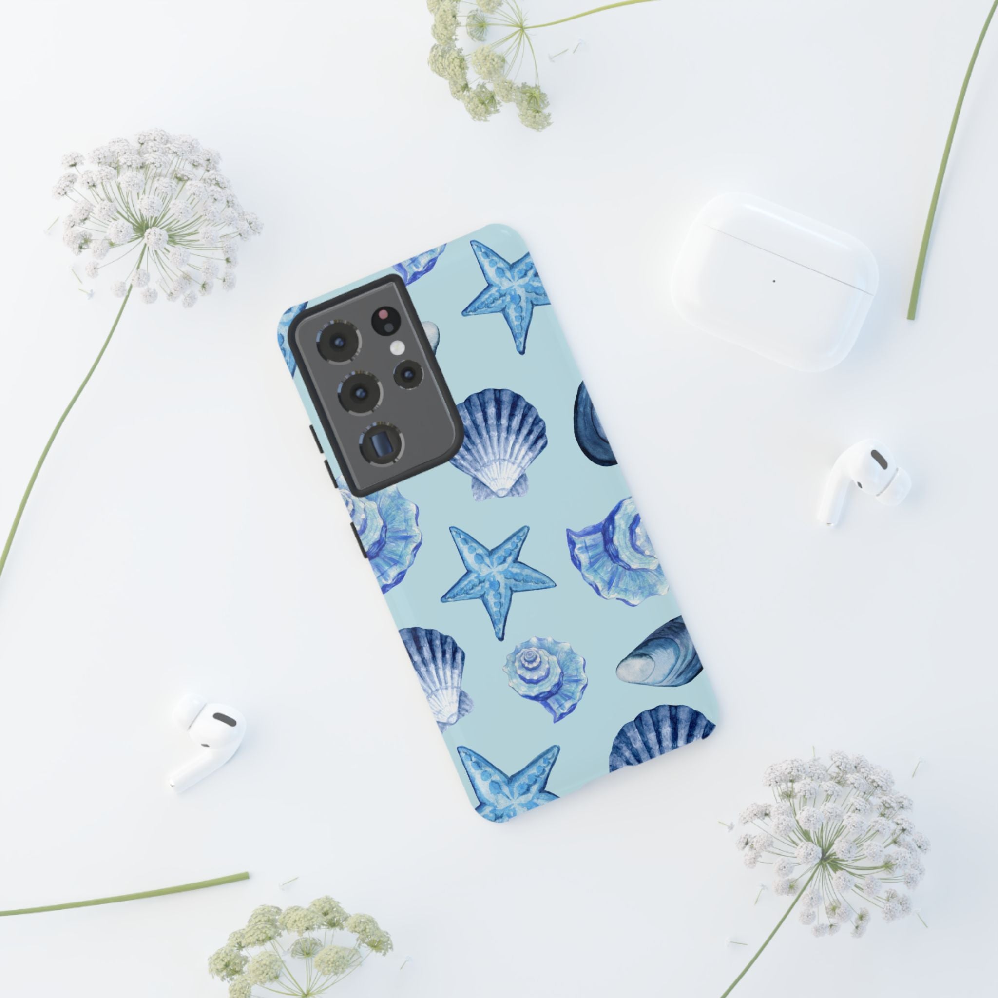 Introducing a stunning phone case that embodies the serene beauty of the ocean with its charming shell and starfish design. This durable case not only protects your phone but also adds a touch of coastal elegance to your daily life. Perfect for beach lovers and those who appreciate the ocean's calm vibe, this phone case makes a thoughtful gift for birthdays, holidays, or just because. Whether you're at the beach, on a nature hike, or enjoying a casual day out, this stylish accessory will catch eyes and keep your phone safe. Its lush design evokes a sense of tranquility, making it an ideal choice for anyone who values aesthetics and functionality. Celebrate the joys of coastal living with a product that seamlessly blends style with reliable protection.