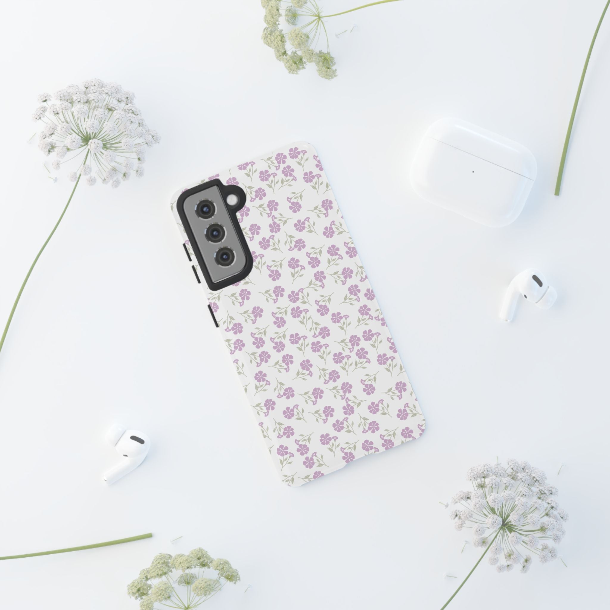 Introducing our stylish and durable Tough Case, designed to offer your phone superior protection while maintaining a chic aesthetic. Adorned with a beautiful purple floral pattern, this case creates a light and fresh vibe, making it perfect for everyday use or special occasions. Whether you're heading to a coffee shop or attending a summer festival, this Tough Case complements your outfit and lifestyle. Ideal for adults who appreciate the blend of fashion and functionality, this case makes a thoughtful gift for birthdays, holidays, or just because. Celebrate your unique style with this essential accessory!