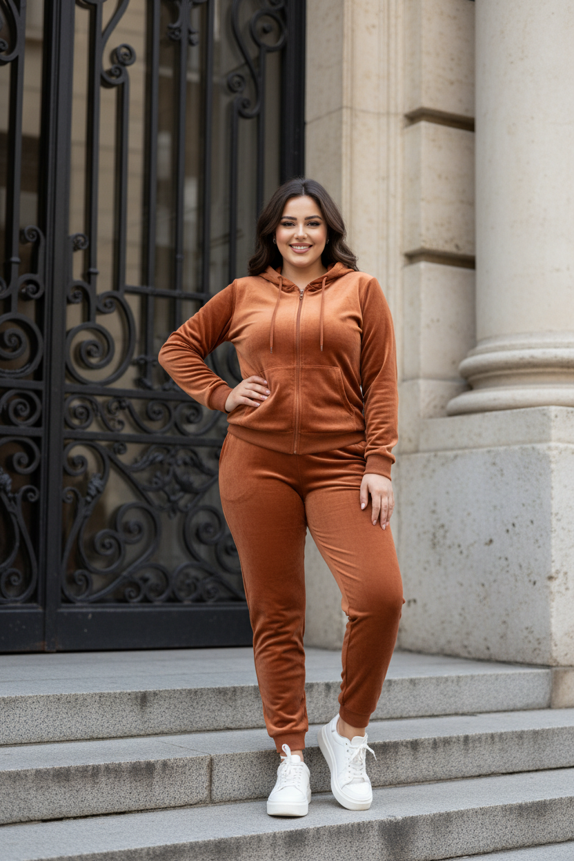 PLUS SIZE RUST velour women's tracksuit