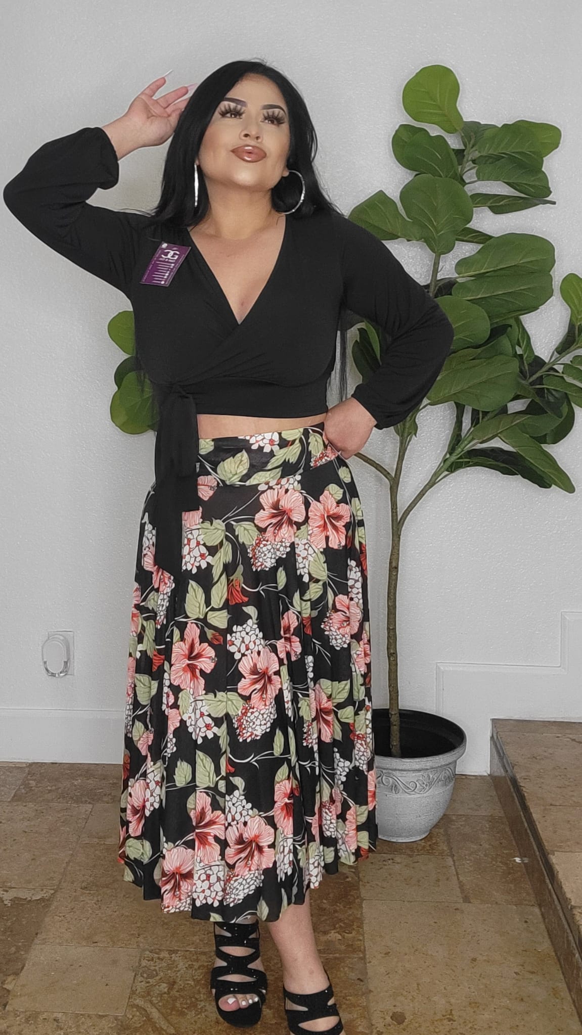 One size skirt BLK RED ROSES